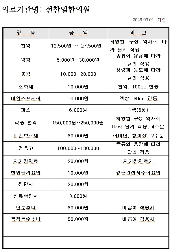 국민건강보험공단의 권고에 따라 저희 한의원의 비급여 항목에 대한 가격표를 업데이트하여 공지합니다.